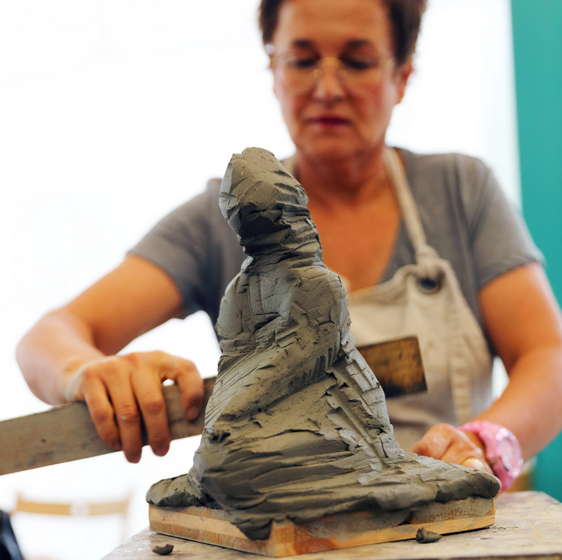 Das Arbeiten mit Ton ist wie Skizzieren mit Bleistift und Radiergummi, einfach 3 dimensional. Man kann probieren, spielen, abtragen und wieder ansetzen. Versuche zur Abstraktion oder das vertiefte Studium zur Anatomie können dank der dieser steten Möglichkeit zur Korrektur auf spielerische Weise angegangen werden. Eine modellierte Figur kann so auch zur Grundlage eines skulpturalen Projekts in Stein oder Bronze werden.